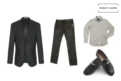 Low-contrast blazer and jeans combinations will usually look dressier than high-contrast ones.