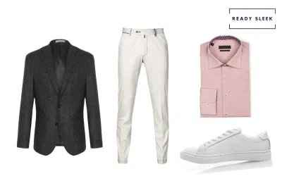 Finally, a pair of sneakers would work a treat here. But don’t get too casual with them. Avoid bulky and athletic canvas sneakers.