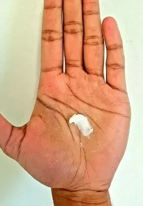 Once you scoop it out, break down (emulsify) the paste by rubbing it between your palms. You’ll want to do this quite quickly as the paste can sometimes clump up and flake after it’s scooped out.