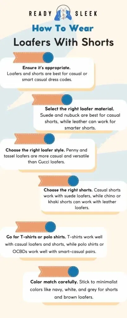Ultimately, it’s important to consider the shirt and shorts style when deciding what color and style of loafer would work best.