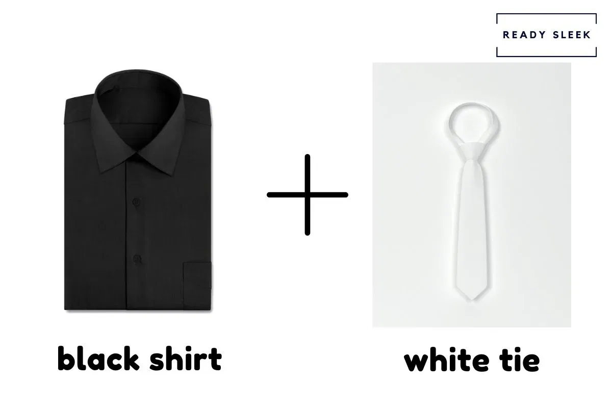 A white tie over a black shirt will easily stand out. Due to the huge amount of contrast you get from the result, it’s the most casual option listed here.
